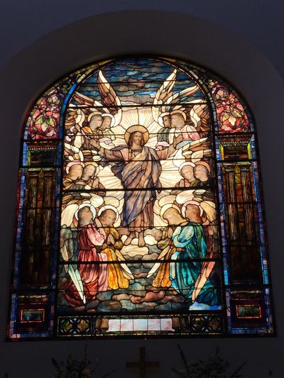 After the Universalist congregation joined the Unitarian church on Lowell Street, the window was boarded up and almost forgotten. The building housed many businesses over the year, including the Nashua Trust Company. The historic window was discovered by a church member, the late Stanley Brooks, who worked at Crosby Bakery. Stanley thought that the window would be perfect for our new building erected in 1980. A generous gift by Frank and Marvis Mellen allowed the window to be removed, refurbished, and installed in its present location. The beautiful window is no longer forgotten by anyone who has been in the sanctuary of the First Baptist Church.